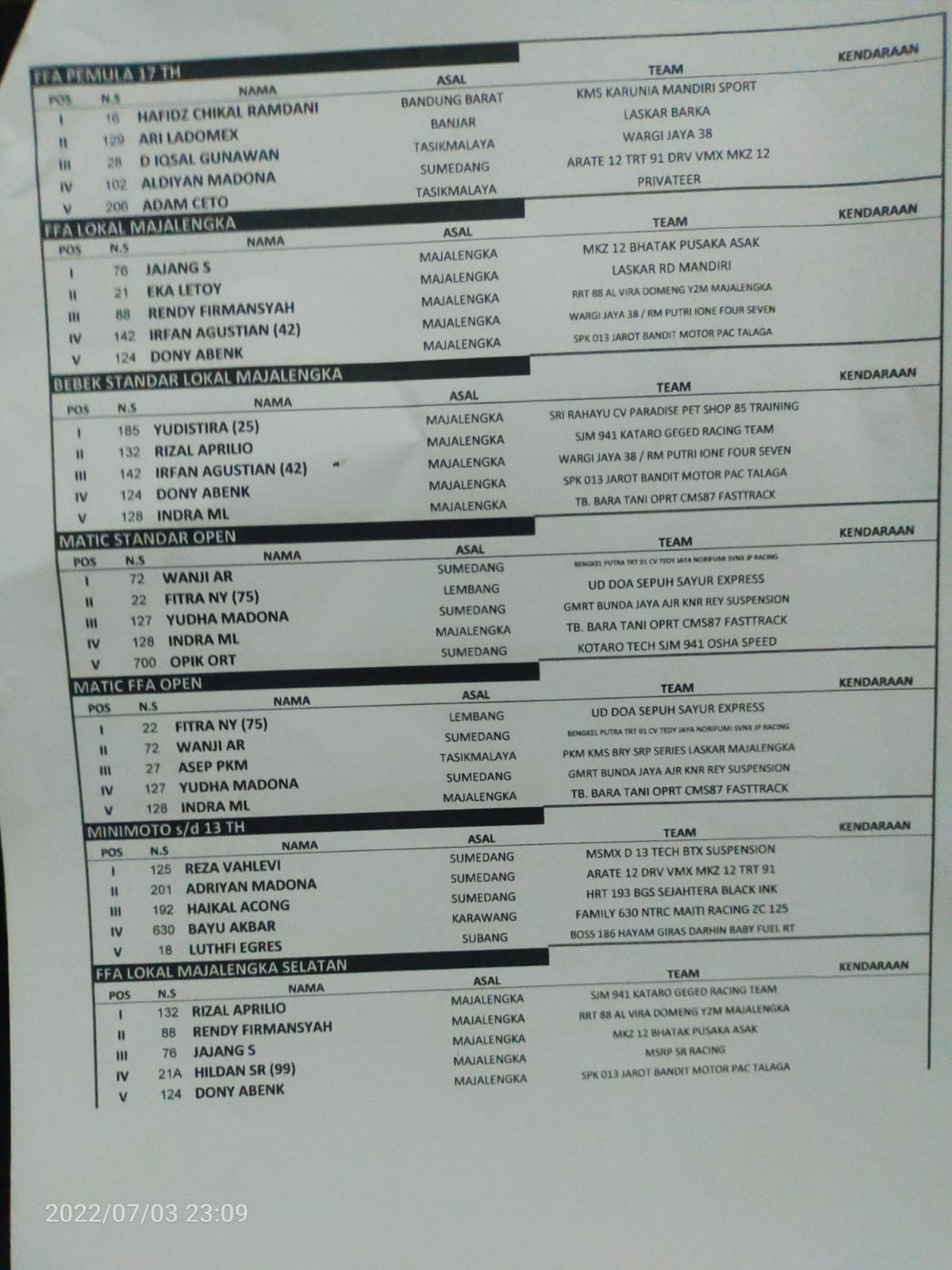 GRASSTRACK ID – Berikut hasil caxra-13 open grasstrack bupati cup 2022 tanggal 2-3 Juli 2022 di Sirkuit Caxra-13 Majalengka, Jawa Barat.