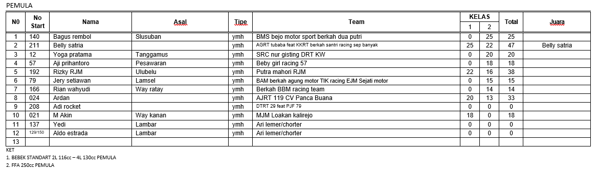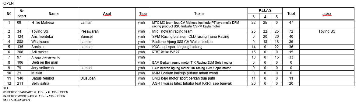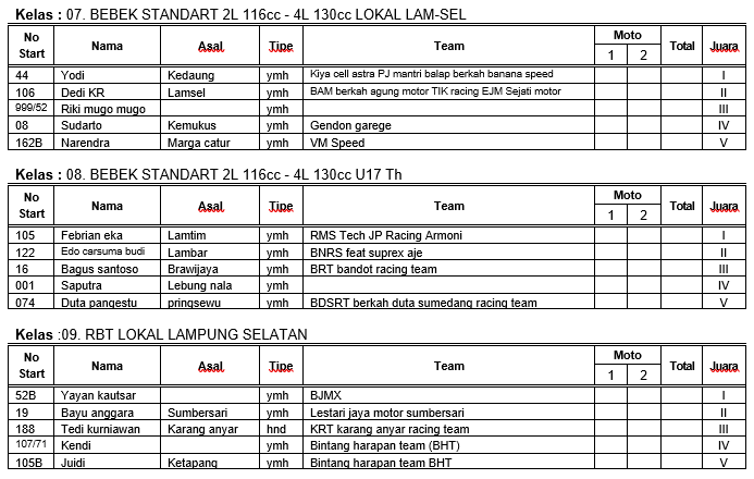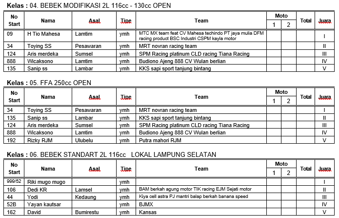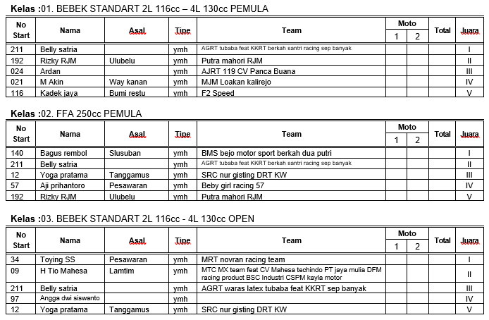 Hasil Resmi Grasstrack Motocross Bone Bolango Gorontalo