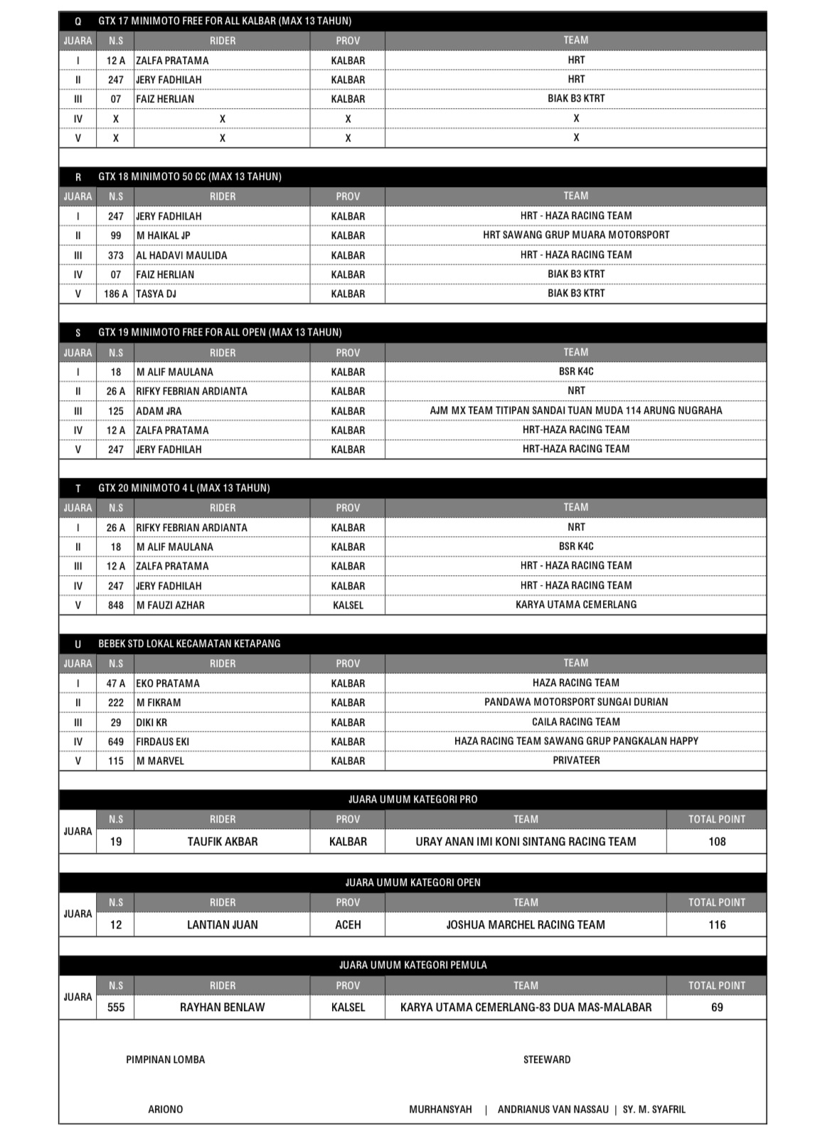 GRASSTRACK ID – Hasil Kejurnas @swallowdelitiredelium Grasstrack 2024 Region IV Putaran 3 Kalimantan Barat tanggal 29-30 Juni 2024 di Sirkuit Muara Kayu Batu Sandai, Ketapang, Kalimantan Barat.