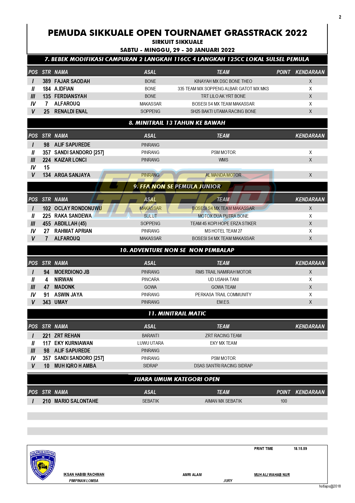 HASIL RESMI KEJURNAS GRASSTRACK REGION V SERI 2