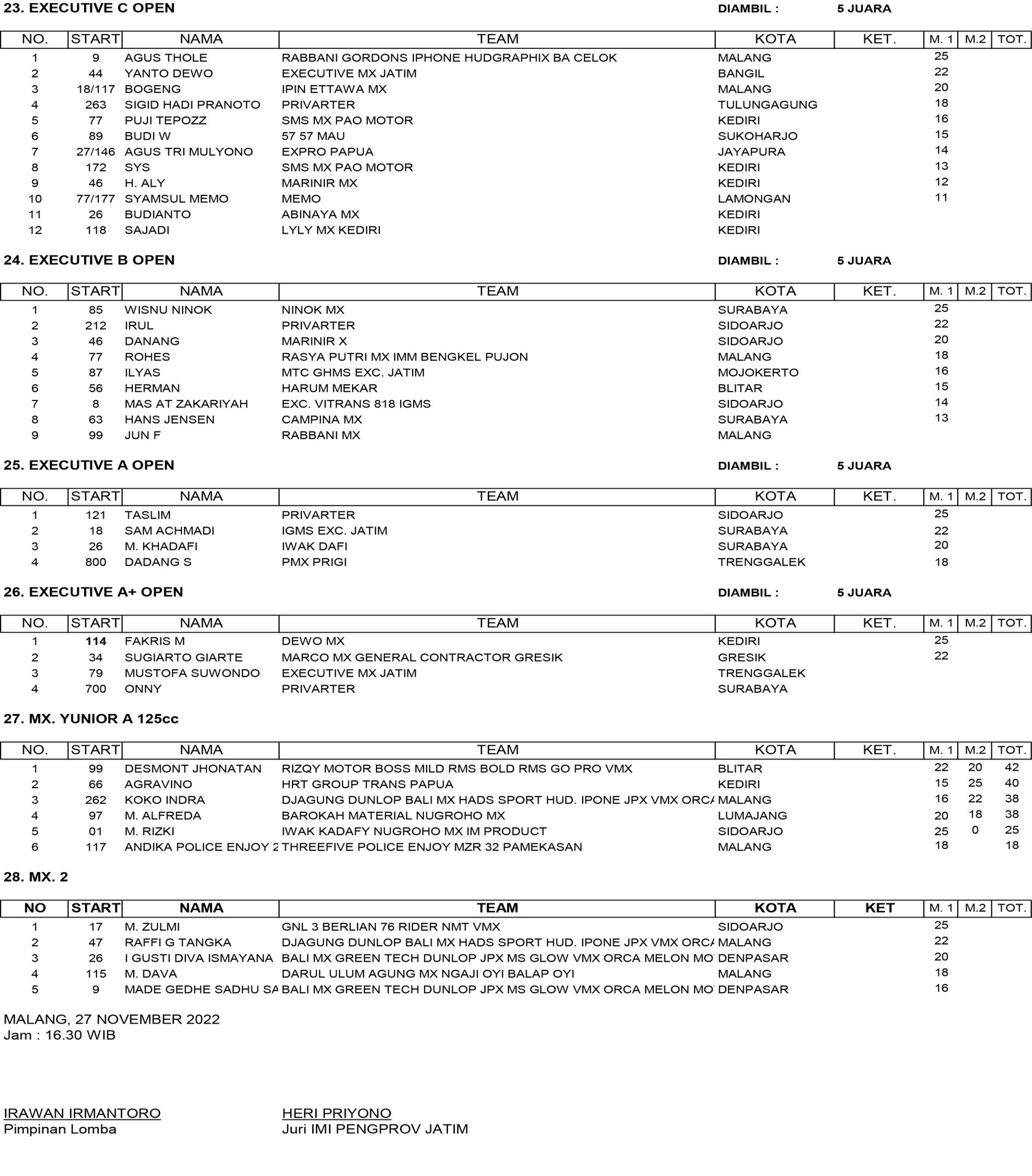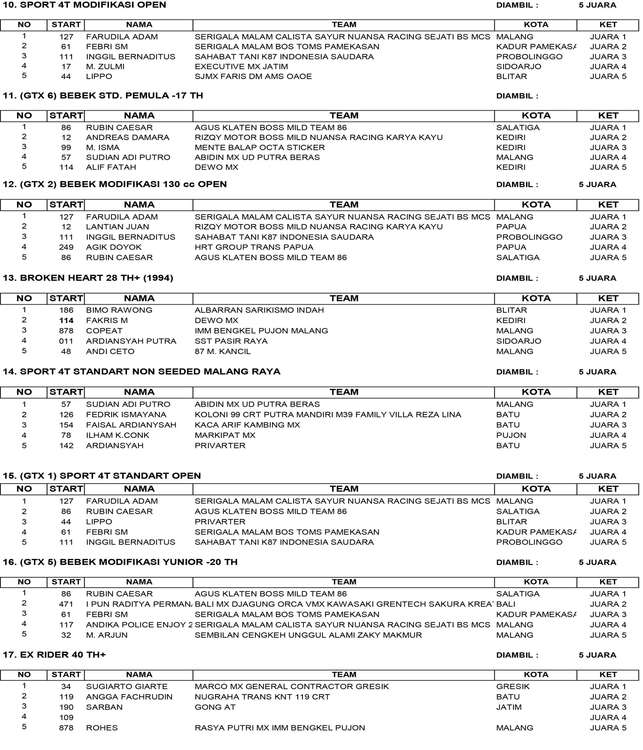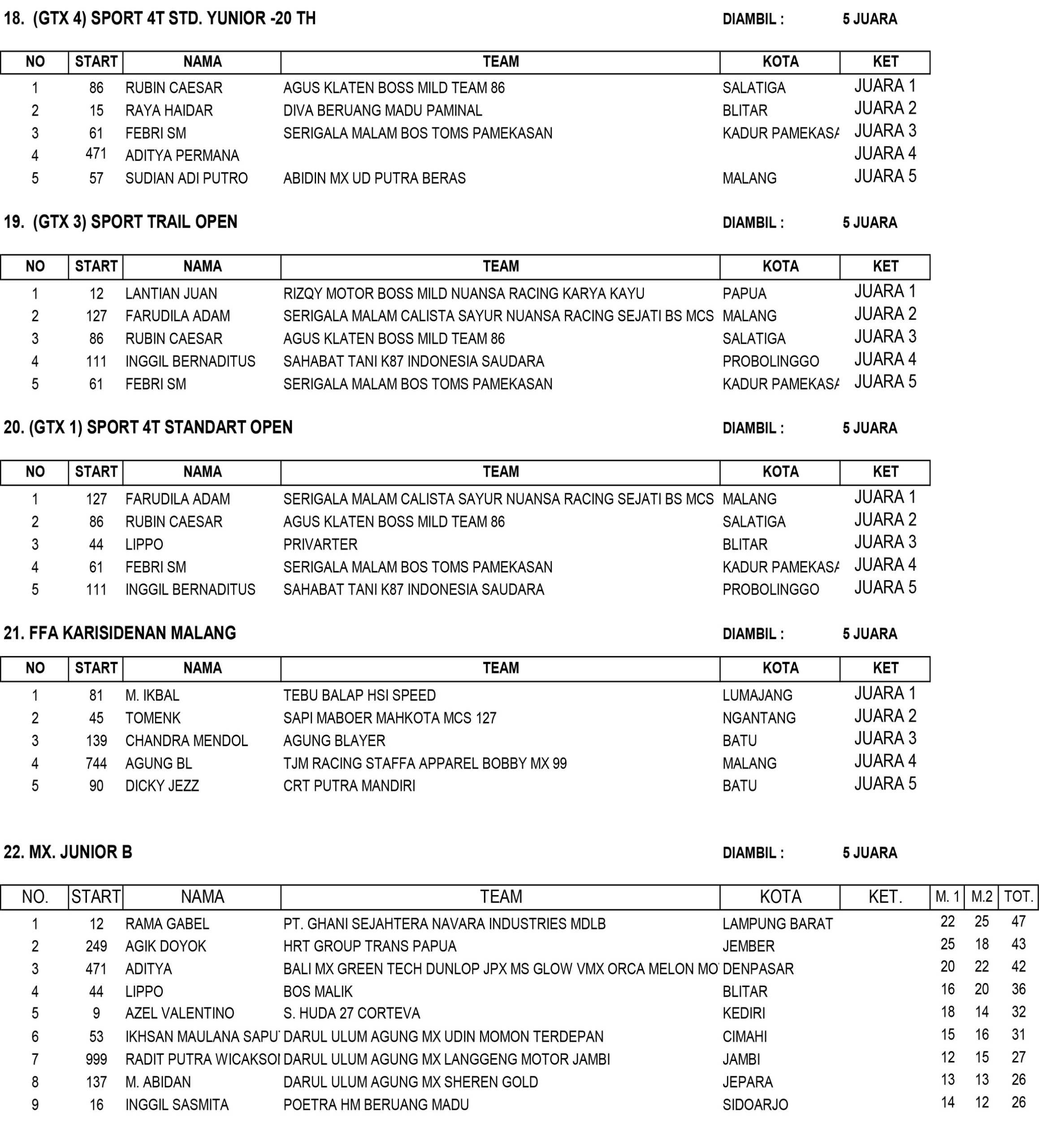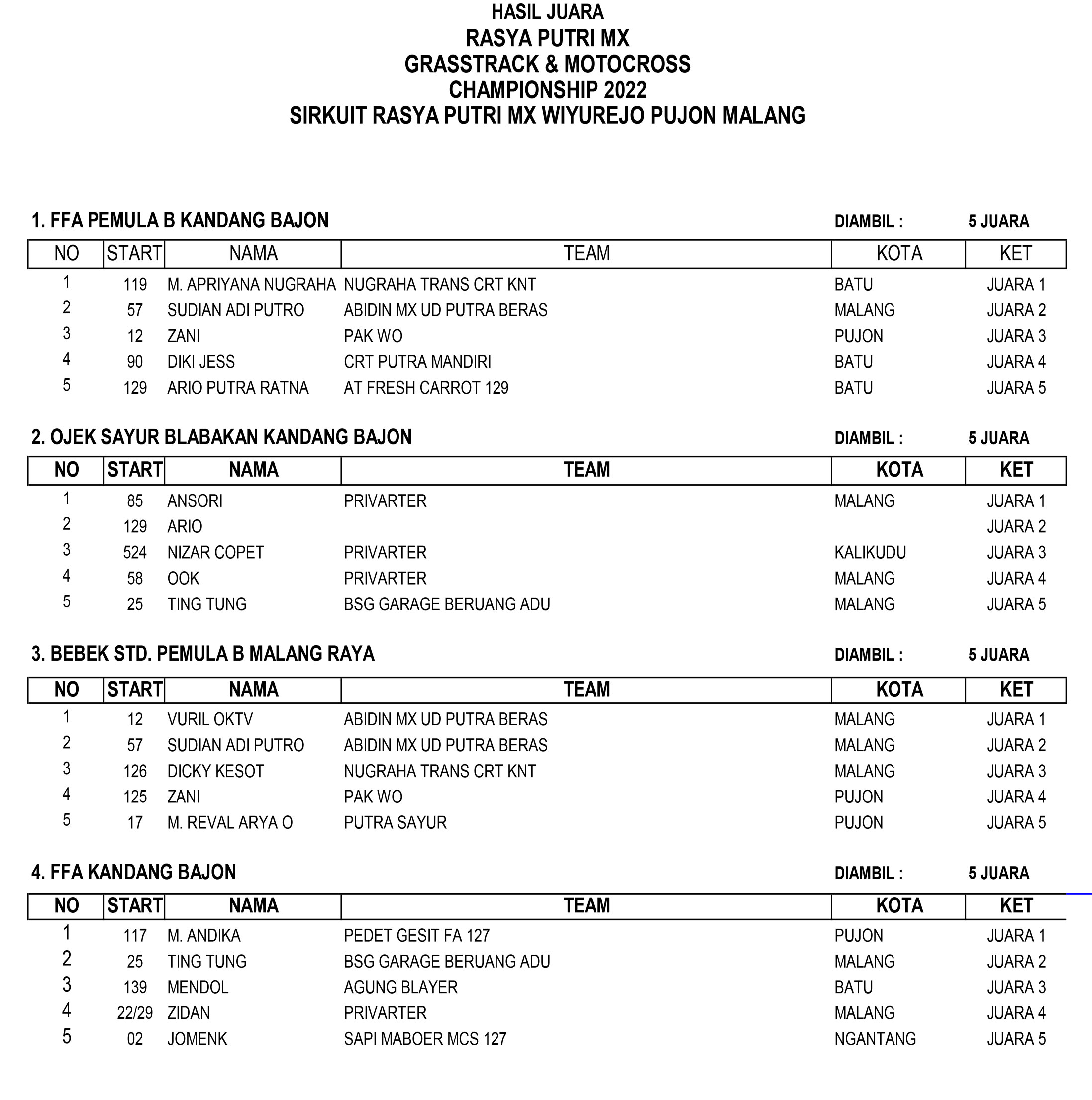 GRASSTRACK ID – Berikut hasil rasya putri grasstrack & motocross championship 2022 yang digelar tanggal 26-27 november 2022 di Sirkuit Rasya Putri MX Pujon, Malang, Jawa Timur.