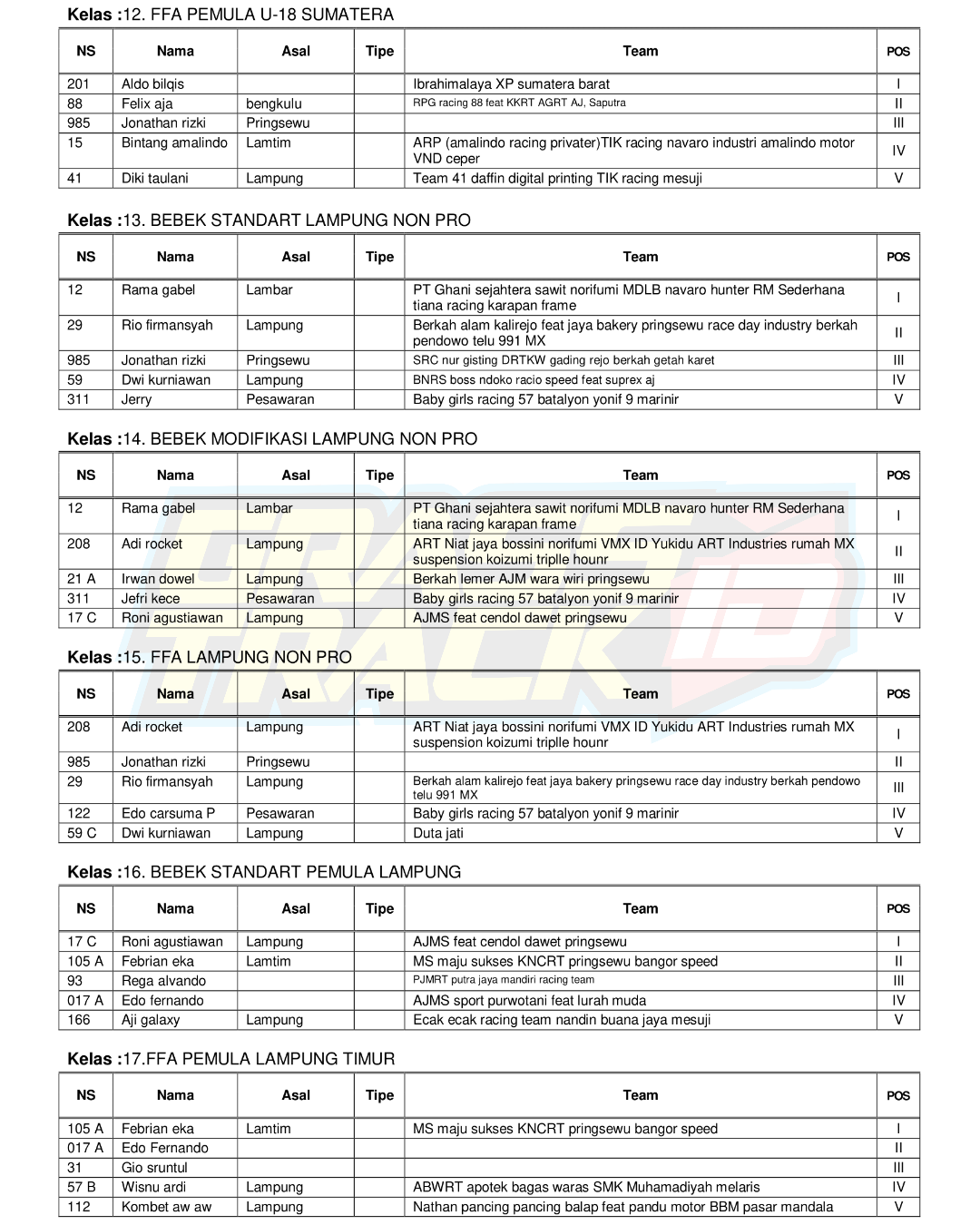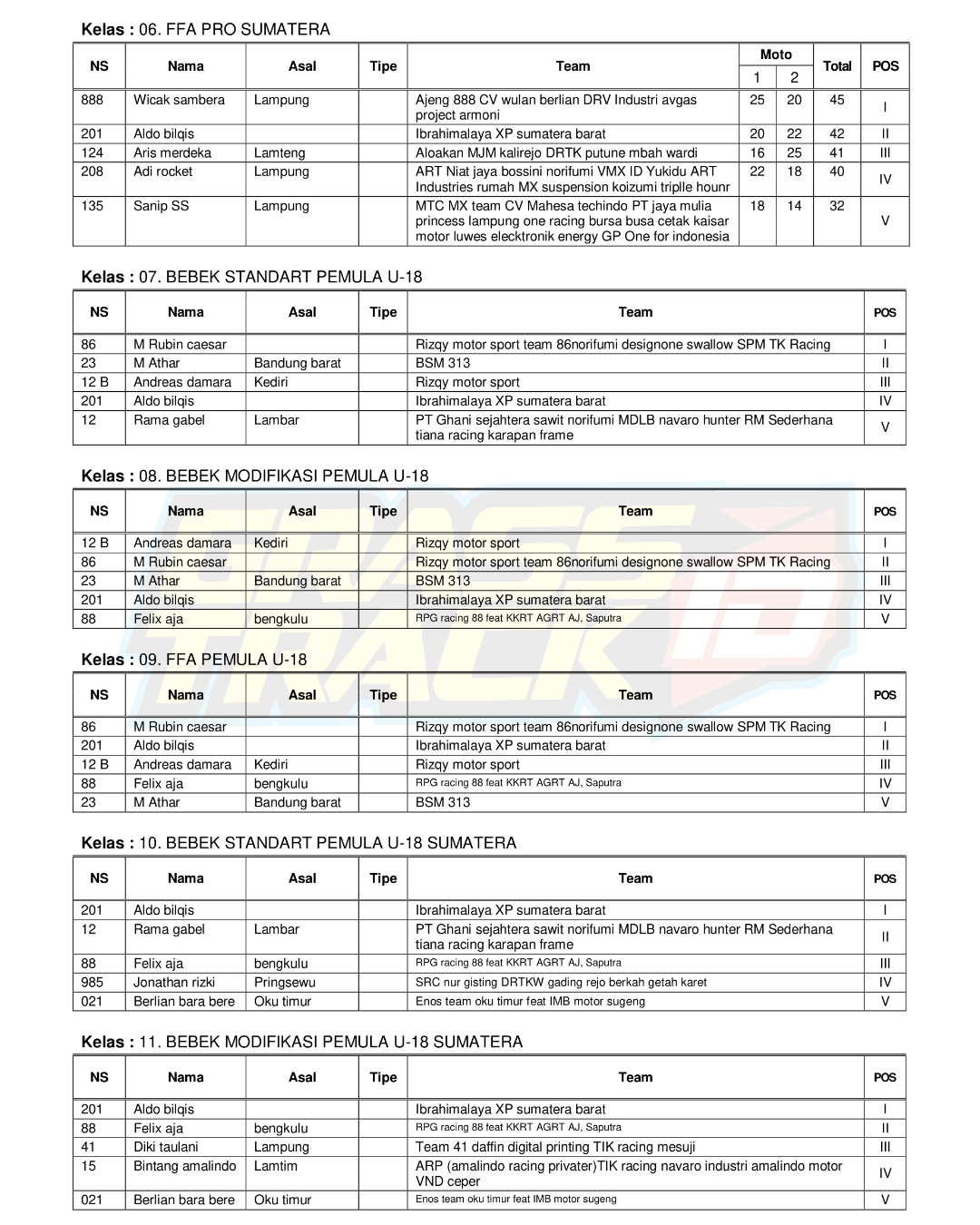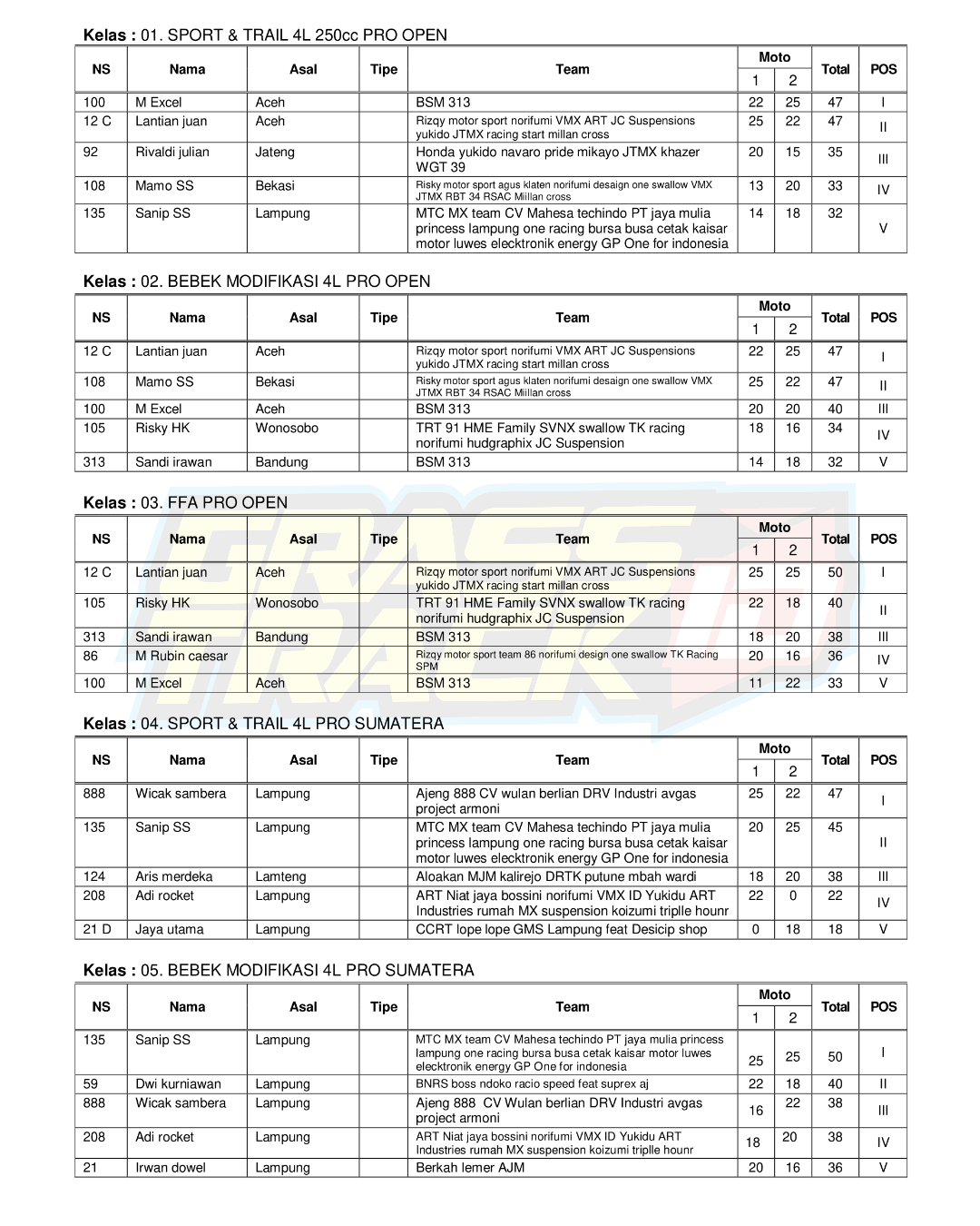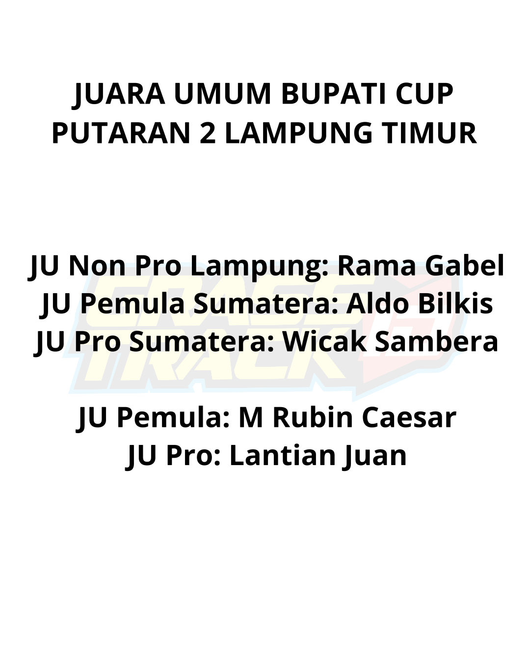 GRASSTRACK ID – Berikut hasil Rizqy Motorsport Bupati Cup 2023 Seri 2 tanggal 11-12 Maret 2023 di Sirkuit MTC Lampung Timur
