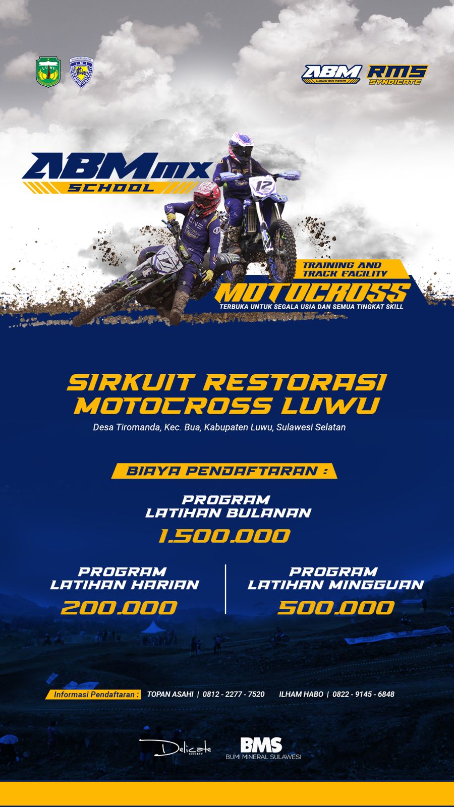 Kegiatan yang akan berlangsung mulai 2 hingga 30 Desember 2022 ini bertajuk “ABM MX School” lokasinya di Sirkuit Restorasi Motocross Luwu Desa Tiromanda Kec. Bua Kab. Luwu, Sulawesi Selatan.