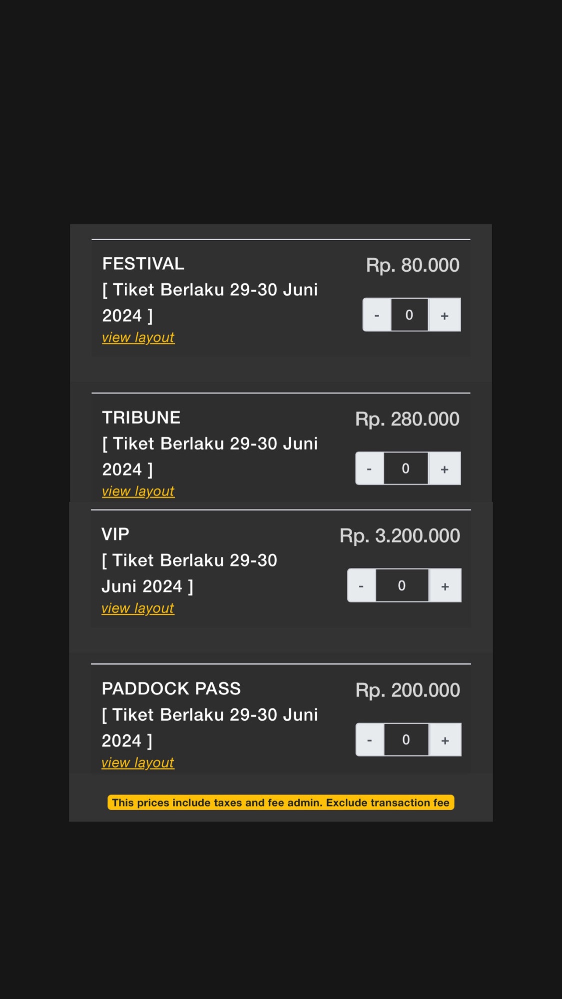Buat kamu yang mau nonton langsung, ini nih info harga tiketnya! Harga tiket (per tanggal 24 Juni 2024) termurah diharga Rp 80.000 dan paling mahal Rp 3.200.000.