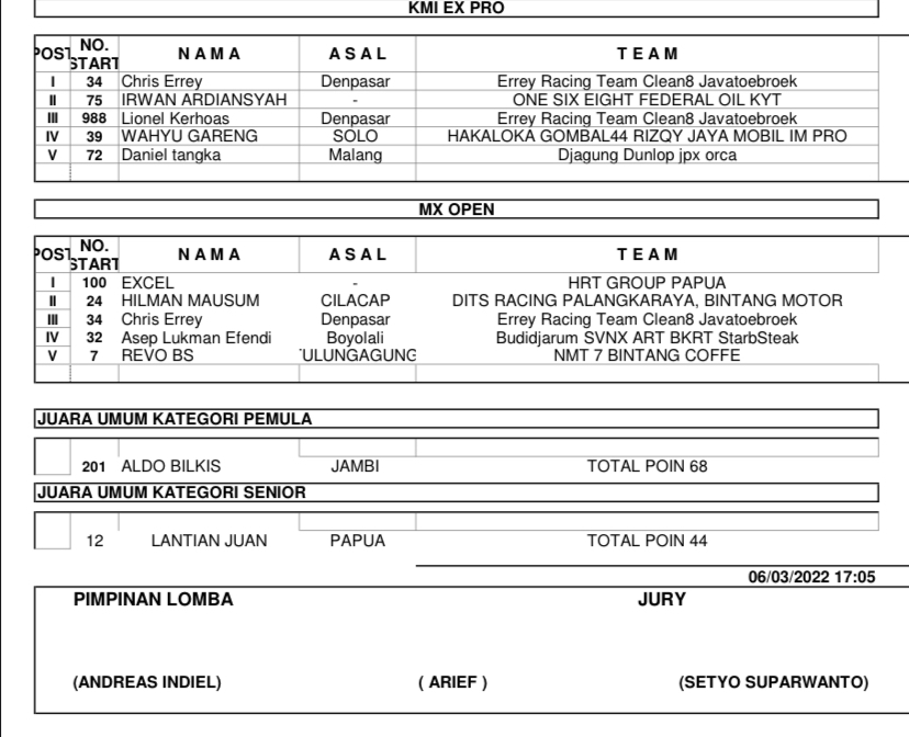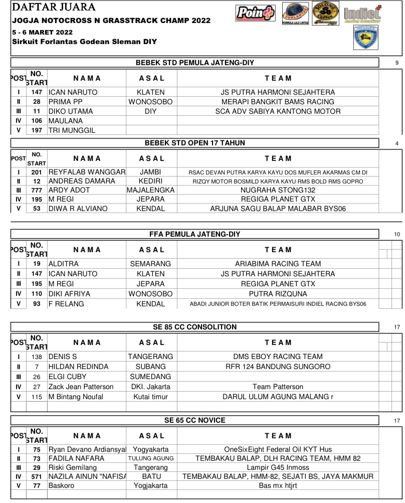 GRASSTRACK ID – Hasil Jogja Motocross Grasstrack Championship 2022 tanggal 5-6 Maret 2022 di Sirkuit Forlantas.