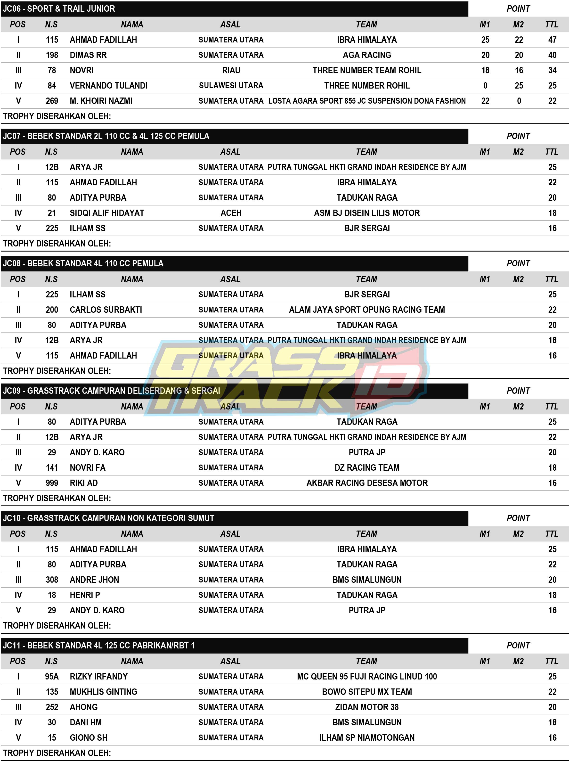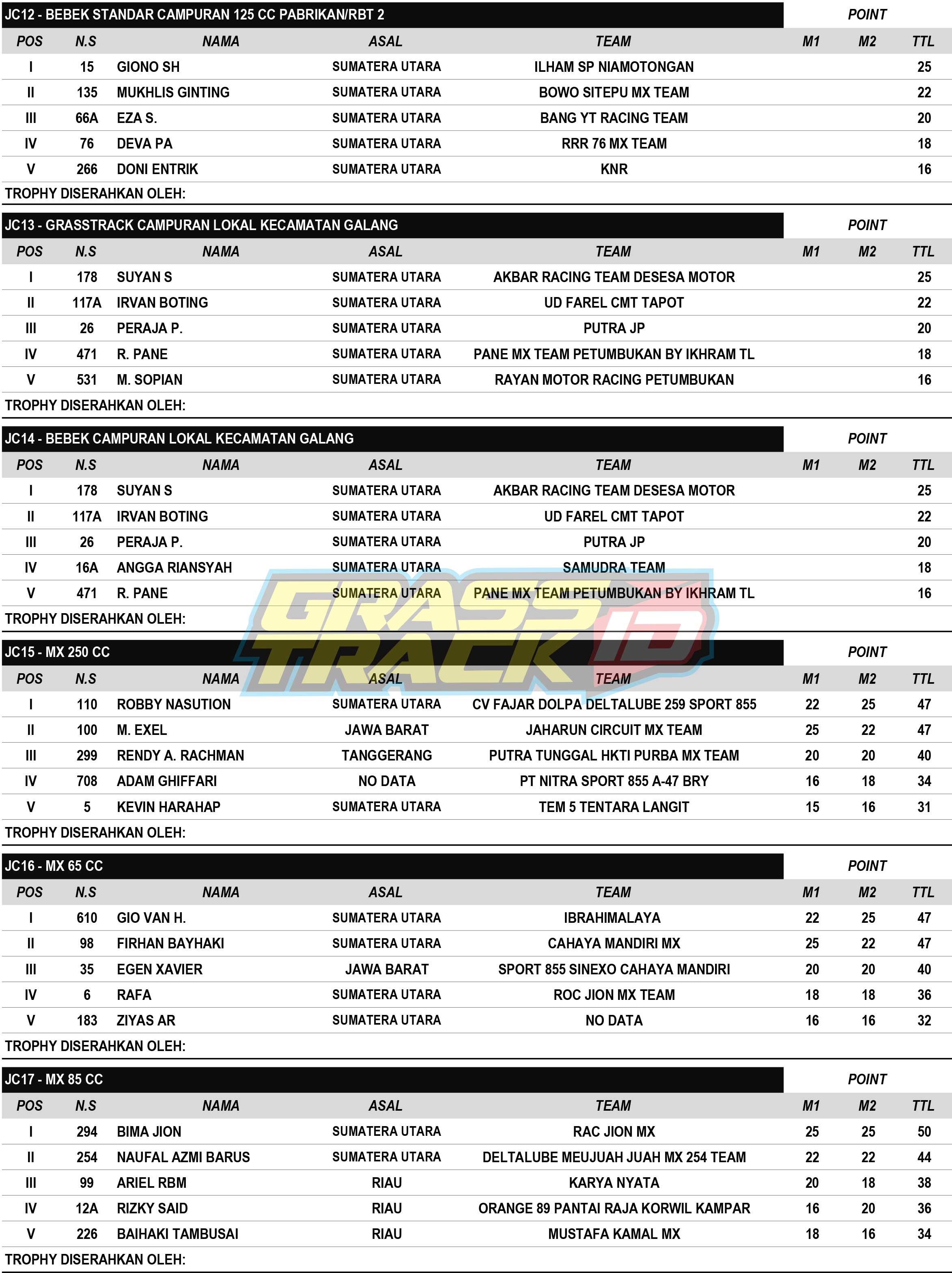 Hasil Resmi Grasstrack Motocross Bone Bolango Gorontalo